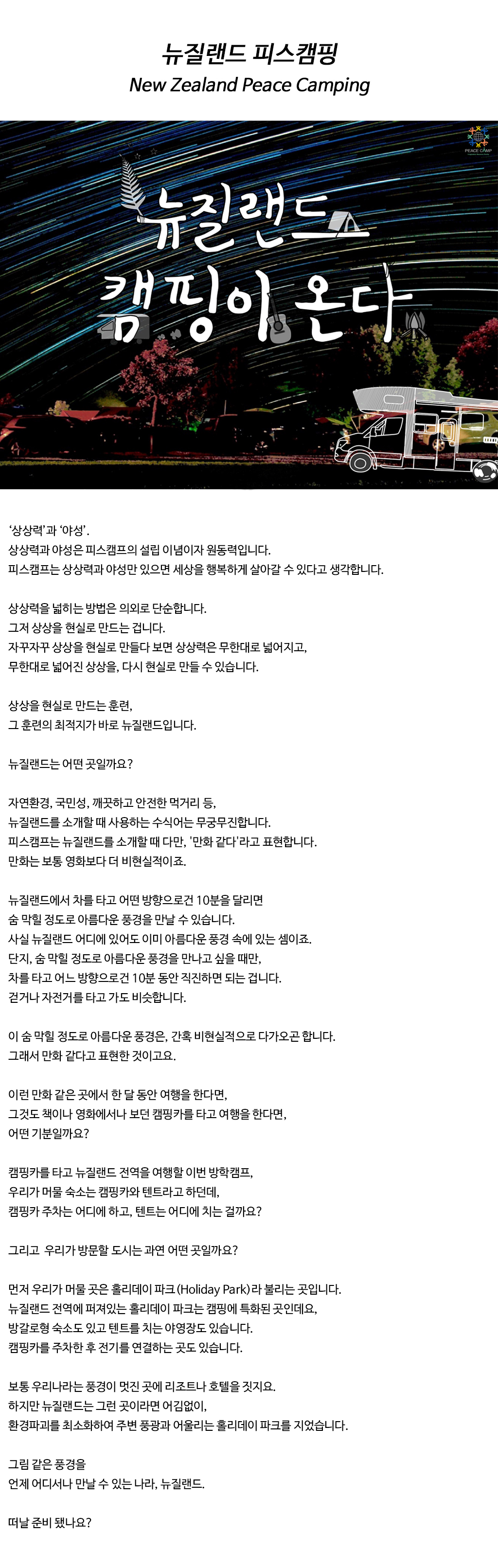 2020 겨울방학캠프 [뉴질랜드 캠핑이 온다!] 참가자 모집 안내