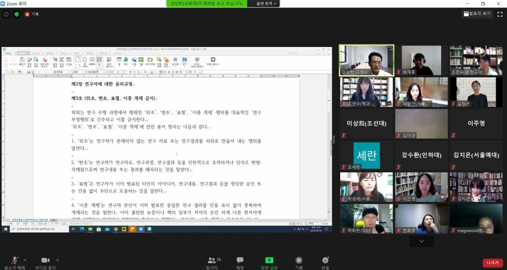 2021년 1차 한국아동청소년문학학회 이사회
